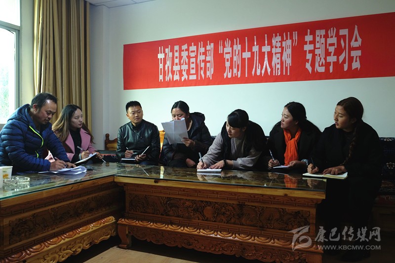本網(wǎng)訊 (則瑪拉姆 文/圖)連日來,甘孜縣依托中心組、干部講堂、“三級三講”等學(xué)教平臺,圍繞“黨的十九大精神、《中國共產(chǎn)黨章程(修正案)》、習(xí)近平新時代中國特色社會主義思想、決勝全面建成小康社會”四大專題開展學(xué)習(xí),采取專家輔導(dǎo)講、專題研討學(xué)、集中考學(xué)評等形式,迅速組織廣大黨員干部原原本本學(xué)、聯(lián)系實(shí)際學(xué)、突出重點(diǎn)學(xué),切實(shí)把黨的十九大精神轉(zhuǎn)化為謀劃發(fā)展的思路、促進(jìn)發(fā)展的舉措、領(lǐng)導(dǎo)發(fā)展的能力和推進(jìn)發(fā)展的合力。圖為11月6日下午,縣委宣傳部組織全體職工專題學(xué)習(xí)黨的十九大精神。