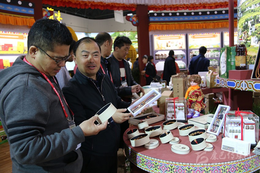 在兩天的參展中,我州展館野生的菌類、酒類,原生態(tài)的牦牛肉、青稞,綠色的大蔥、蘿卜……五顏六色,讓人垂涎。