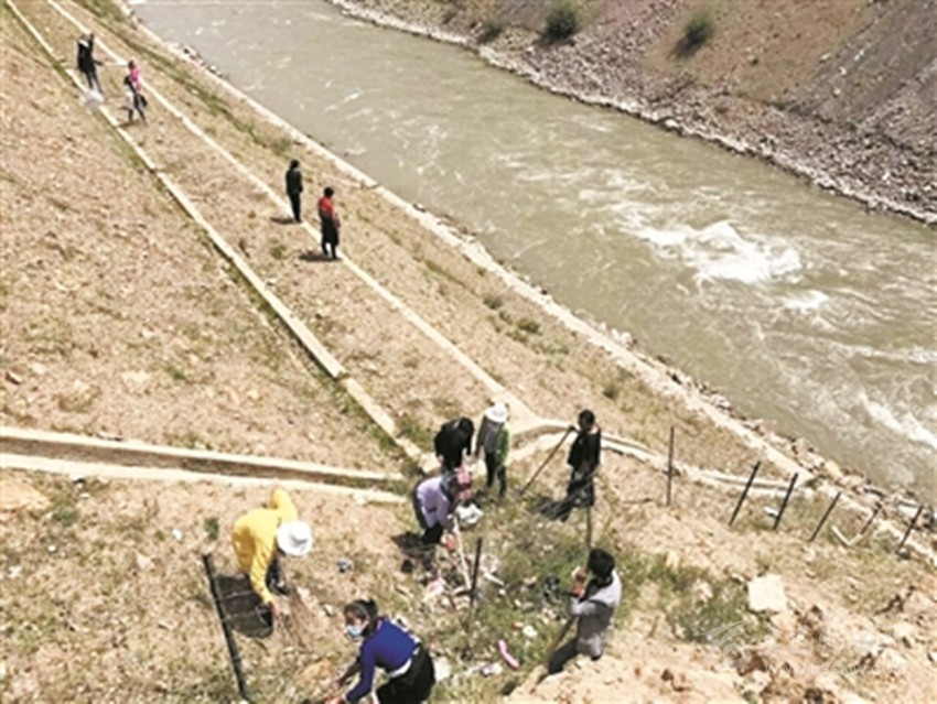 爐霍縣洛秋鄉(xiāng)村民對轄區(qū)河道進(jìn)行治理。