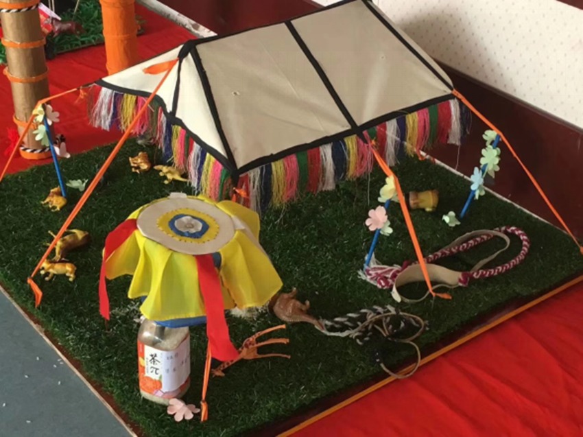 文藝匯演中,有充滿青春活力的現(xiàn)代舞《海草》、有熱情豪放的藏族舞蹈《真達鍋莊》《弦子》《打墻舞》、有別具一格的廢物回收“環(huán)保時裝秀”、有藏族山歌《牧女》,還有童趣濃郁的情景劇《小熊請客》《熊出沒之保護環(huán)境》等,小演員們惟妙惟肖的表演令人忍俊不禁,現(xiàn)場掌聲連連。少年宮作品展覽有各類藏漢書法、唐卡繪畫、剪紙以及黑帳篷、紡織機、藏式房子、藏戲面具等民族特色手工藝品,一件件精致的藝術(shù)作品,展現(xiàn)了孩子們的心靈手巧。