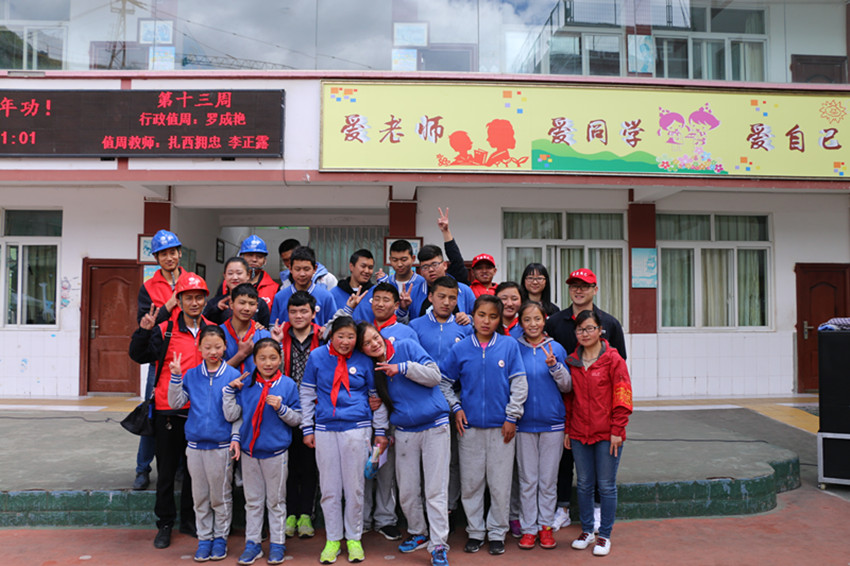服務隊員與學生們合影留念。