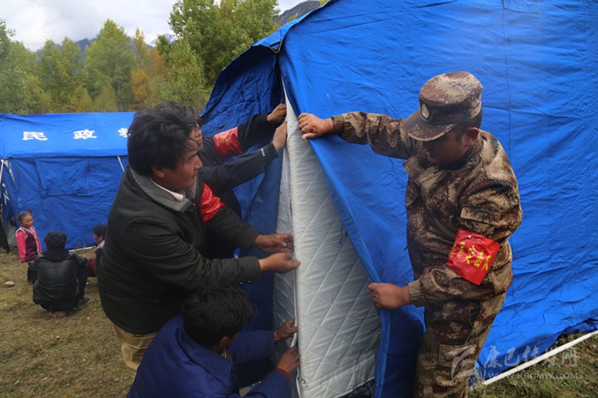 走進(jìn)炯青洞臨時(shí)安置點(diǎn)27號(hào)帳篷,見(jiàn)到村民康珠正在整理被蓋。她介紹說(shuō),縣里給每戶村民發(fā)了5床棉被,發(fā)放了礦泉水、方便面、餅干,發(fā)放了常用藥,還拉上了電,每天晚上能用上4個(gè)小時(shí)的電,我們睡了,還有黨員干部輪流值班?!包h和政府為我們想得很周到,讓我們吃得飽穿得暖還睡得安全?!?/p>
