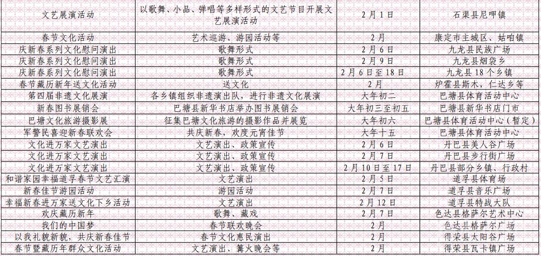 2019年春節(jié)藏歷新年期間“我們的中國(guó)夢(mèng)·文化進(jìn)萬家”活動(dòng)安排