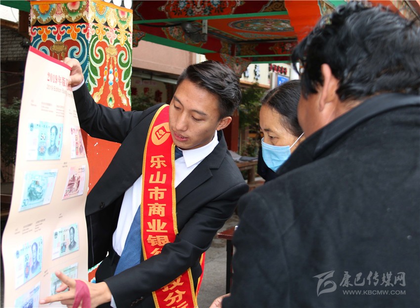 活動現場,來自人行甘孜中心支行、農發(fā)行甘孜州分行、郵儲銀行甘孜州分行、樂山商行甘孜分行等工作人員從新版、舊版人民幣對比和設計調整、防偽特征、識別鑒定方法等方面向過往群眾講解了2019年版第五套人民幣防偽知識?,F場通過展示展版、發(fā)放藏漢雙語宣傳冊,廣大市民對第五套人民幣有了進一步了解。