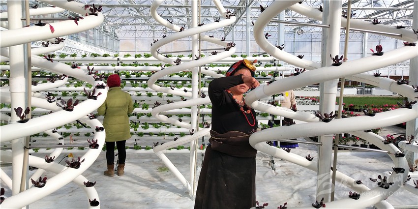 2019年4月16日,在色達縣旭日鄉(xiāng)江達村蔬菜大棚內,江達村村民葉美動作麻利地采摘黃瓜,熟練的采摘技術讓她一天能掙100余元。“現(xiàn)在,村里建起了蔬菜大棚,自家的土地流轉后金實公司每畝地給她700元,14畝將近1萬元;自己還在蔬菜基地打工,一年收入2.5萬元;家人還在色達縣城做蔬菜生意,一年收入6萬元,我們的日子越過越有奔頭?!弊猿晒γ撠毢螅~美的臉上始終洋溢著幸福的微笑。