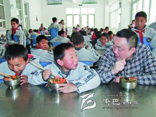 聽到聲音,康武賓館老總余輝立即來到學生們中間,把剛打好的飯菜放在桌上,便詢問道:“飯菜香不香,現(xiàn)在是你們長身體的時候,要吃好、吃飽,平時要養(yǎng)成好的飲食習慣。”