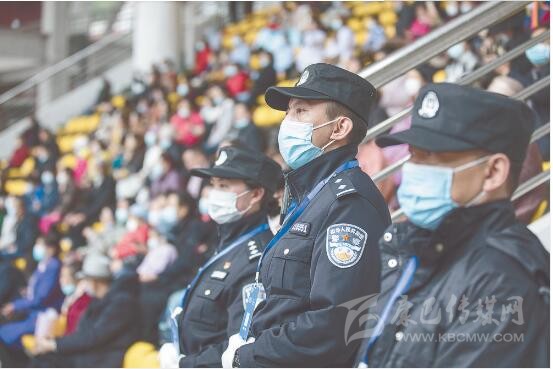 “請(qǐng)出示你的身份證,配戴好口罩。”“大哥你找錯(cuò)方向了,你是往那邊走?!薄鞍?,你的位置是往左邊走?!薄诒遍T(mén)體育場(chǎng),民警除了安保執(zhí)勤以外,還幫助行動(dòng)不方便的群眾找尋座位,或?yàn)樽稍?xún)的群眾答疑解惑。