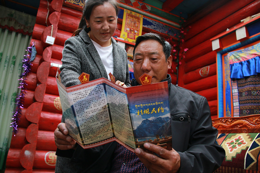 向退休職工敬獻(xiàn)哈達(dá)。