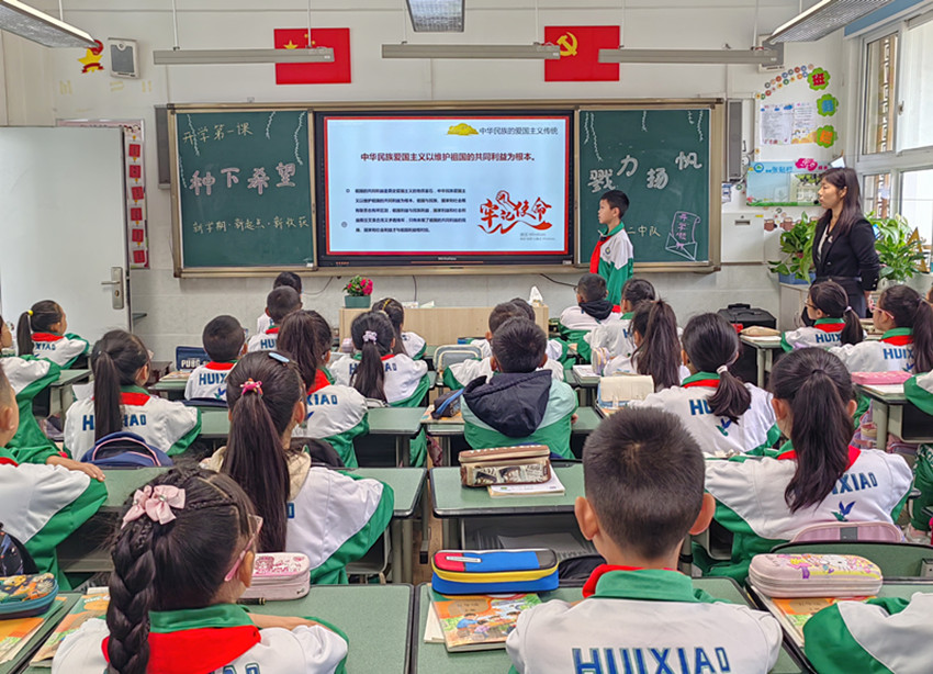 “同學(xué)們好,新學(xué)期開始了,今天我們一起來學(xué)習(xí)什么是愛國……”康定市回民小學(xué)五年級二班教室內(nèi),在班主任胡康瓊引領(lǐng)下,學(xué)生代表為同學(xué)們講授著開學(xué)第一課。課堂上,他以愛國主義教育為主題,通過視頻、文字等資料,以講述和提問的方式引導(dǎo)同學(xué)們理解愛國的重要性。