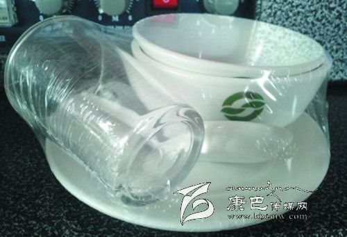 用塑料薄膜包裹的消毒餐具,內(nèi)有盤子、碗、醋碟、勺子、杯子,外加一雙筷子。當(dāng)它們放到你面前時(shí),看起來很干凈,包裝膜上還印有“衛(wèi)餐消證號”、生產(chǎn)日期和廠家等信息,看似很正規(guī)。但有時(shí)你會(huì)發(fā)現(xiàn),戳破那層膜,部分消毒餐具會(huì)有污跡、飯菜渣或水跡等。這些餐具都是經(jīng)過高溫消毒的,為何會(huì)有這些污跡?它們是怎么漂洗出來的?又是怎么消毒的?