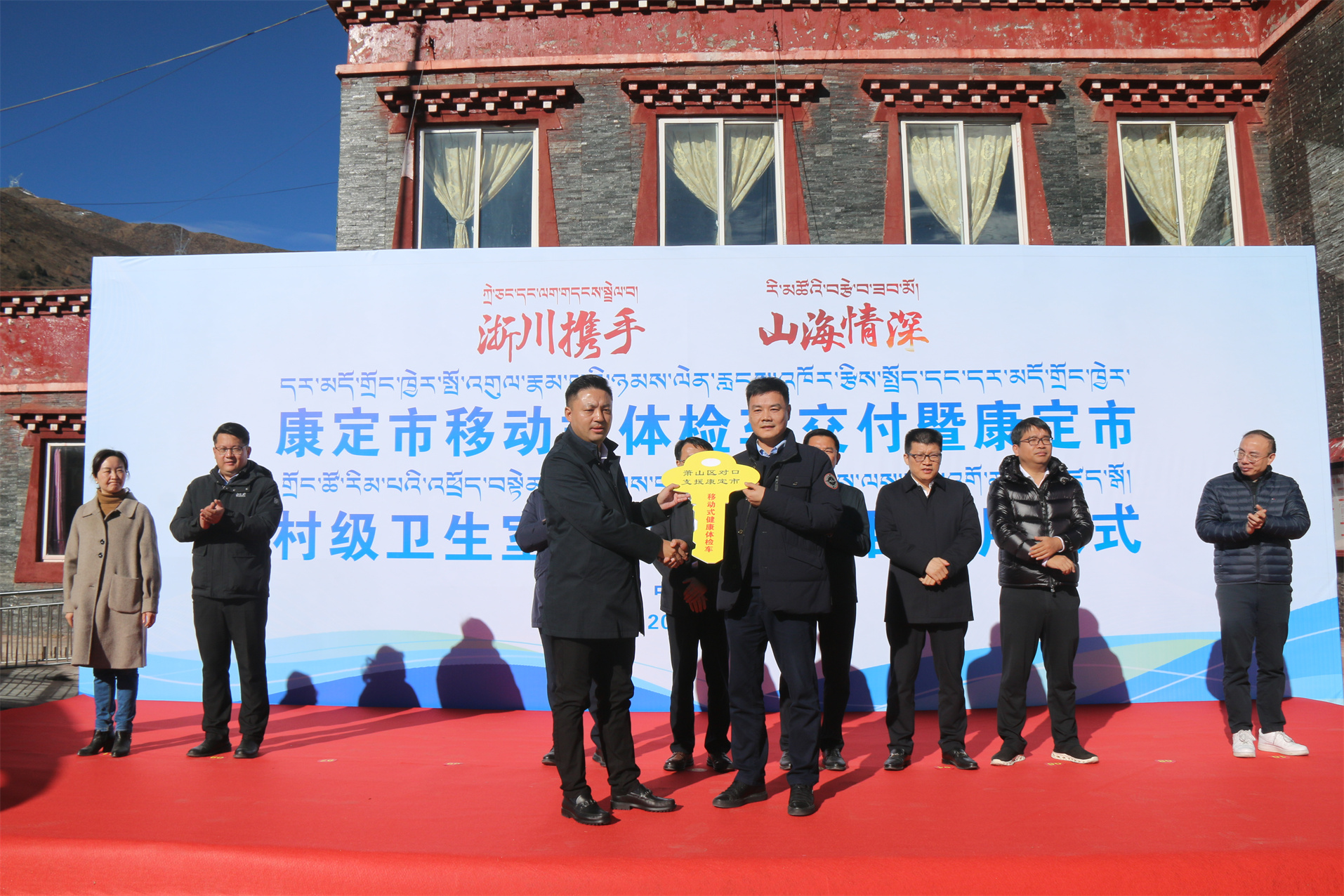 圖為杭州市蕭山區(qū)對(duì)口支援康定市移動(dòng)式健康體檢車(chē)暨康定市“鄉(xiāng)村振興醫(yī)療發(fā)展計(jì)劃(村衛(wèi)生室提升改造)”項(xiàng)目交付儀式。