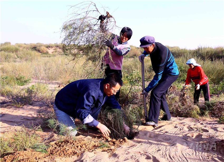 “后來我想開了,我既然不懂,就求助于懂的人。”張應(yīng)龍說。他走訪了許多高校和科研院所,拜訪過許多專業(yè)人士。一位中科院專家告訴張應(yīng)龍,在沙漠里種樹不能盲目,一定要先把水保住,這樣土壤中的養(yǎng)分才不會(huì)流失,種樹的成活率才能高。同時(shí)還要種混交林,喬灌結(jié)合。這讓張應(yīng)龍茅塞頓開。
