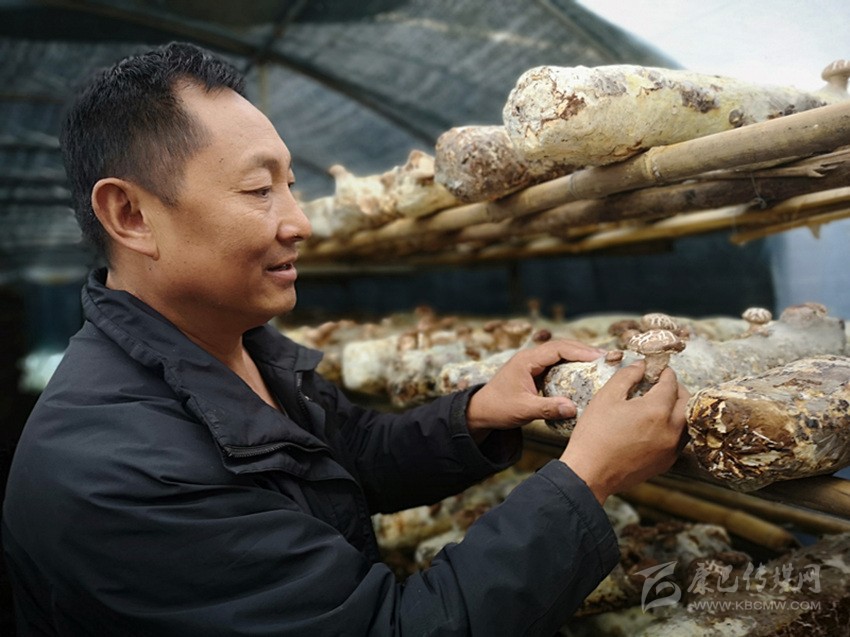 降措查看香菇生長(zhǎng)情況。