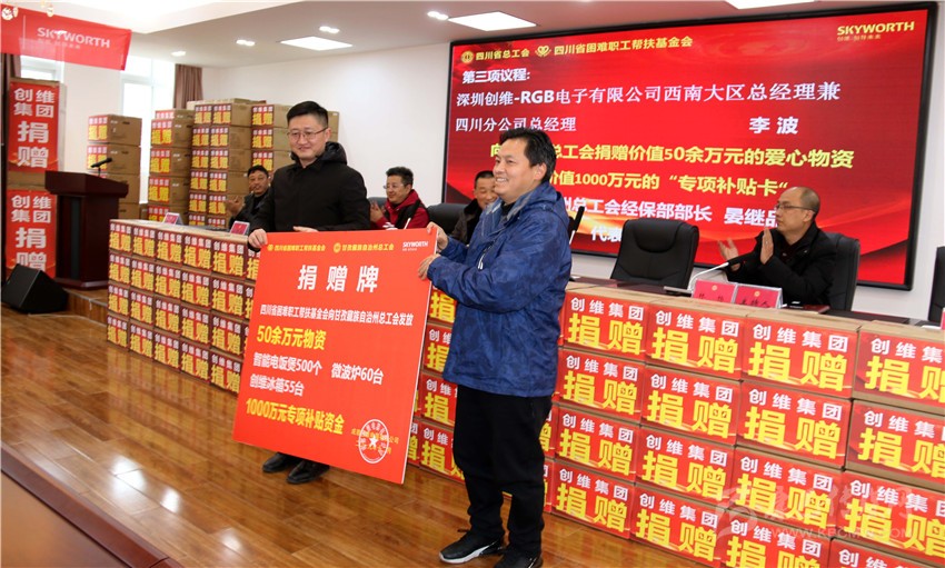 本網(wǎng)訊 12月10日,由四川省總工會(huì)、四川省困難職工幫扶基金會(huì)、甘孜州總工會(huì)、創(chuàng)維集團(tuán)聯(lián)合主辦,康定市總工會(huì)、成都創(chuàng)維電器有限公司承辦的“創(chuàng)維公益萬里行、集善幫困暖人心”活動(dòng)啟動(dòng)暨愛心捐贈(zèng)物資康定市發(fā)放儀式在康定舉行,為我州困難職工(農(nóng)民工)捐贈(zèng)價(jià)值50余萬元的愛心物資及價(jià)值1000萬元的“專項(xiàng)補(bǔ)貼卡”。