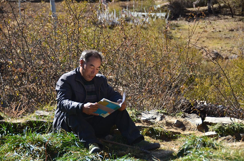 那一年,教室的過道里燃起熊熊的炭火,孩子們坐在溫暖的教室里,那郎朗的讀書聲久久縈繞在藏寨的上空。就這樣,復式班級的教學工作他一干就是十余年,后來,村里的兩位高中畢業(yè)生也走進長納村小,長納村小的師資力量得到了補充。那一年,長納村小成立第一個教研組,阿布里擔任語文、數學教研組組長,在教研會議上,他將自己的教學經驗無私傳授給兩位代課教師。