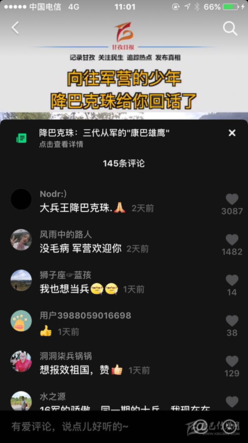 最令人的驚喜的是,“兵王”降巴克珠竟然看到了這段“隔空”喊話的視頻,并在訓練場上錄制視頻回應了這個牧區(qū)少年!8月16日,《甘孜日報》康巴傳媒中心抖音號發(fā)布了一段42秒的視頻,其中展示了降巴克珠對郎卡扎西的期許。