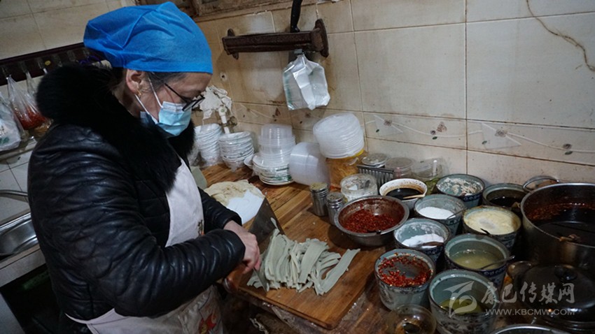 打開門店,鋪好案板,取出昨晚“拷”好的涼粉,以快刀嫻熟將其切條,清點(diǎn)一下碗筷,在手機(jī)端打開“餓了么”App等待客人訂餐的信息……。上午8點(diǎn),53歲的辜良虹又在對(duì)傳統(tǒng)味道的雕琢中,開啟了開心的一天。這12年來,大多數(shù)康定市民的味蕾上,都留下了這種開心的記憶。
