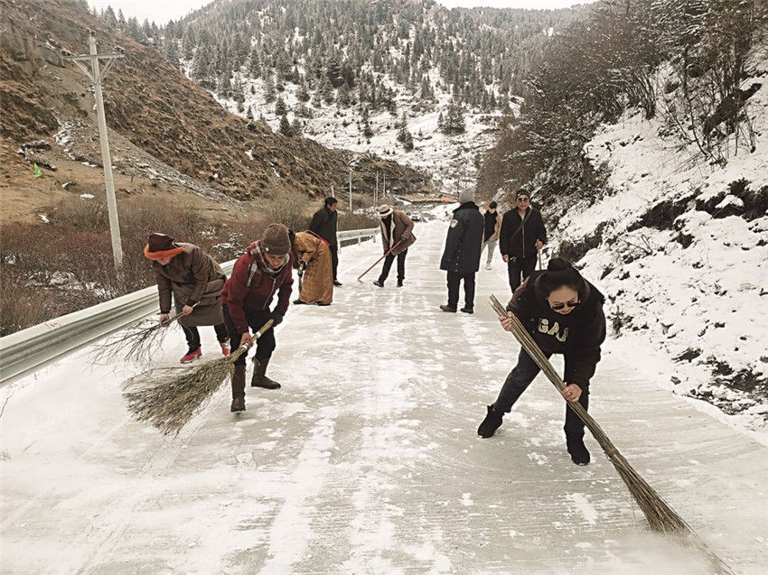 本網(wǎng)訊 連續(xù)多日降雪,甘孜縣披上了一抹銀裝,白雪皚皚別有一番景象,但也給群眾的出行帶來(lái)了不便。為暢通交通、方便群眾,該縣各級(jí)黨組織在風(fēng)雪中吹響了為民服務(wù)的“集結(jié)號(hào)”,一隊(duì)隊(duì)人馬在基層一線“浴雪”奮戰(zhàn),一張張“凍人”笑容在鄉(xiāng)間戶頭來(lái)回穿梭,一幕幕感人的場(chǎng)景在冰天雪地里溫暖人心。