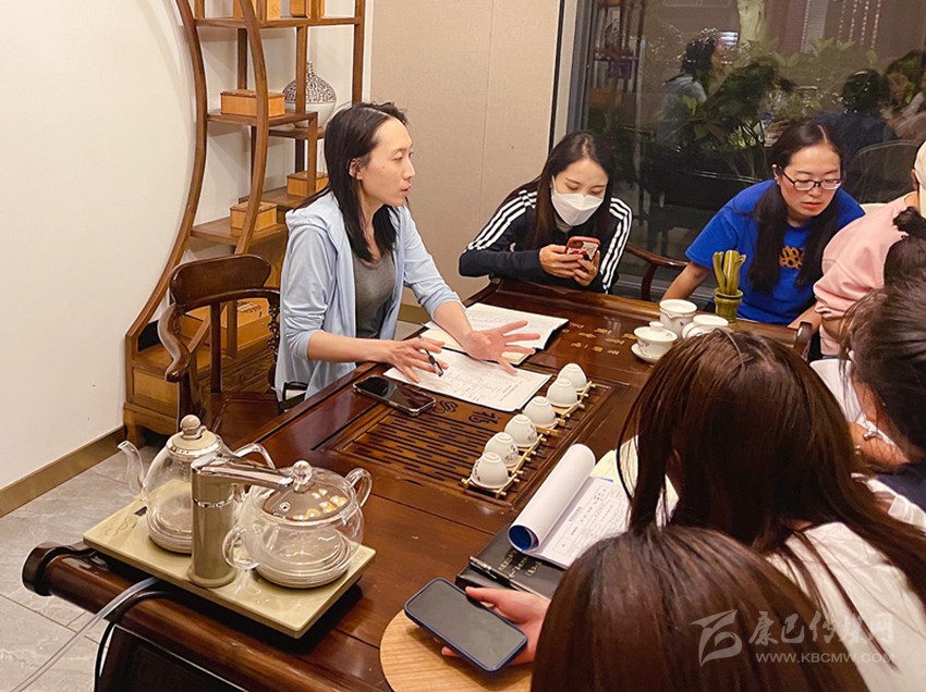 李曉(左一)組織和指導色達的參培教師們進行分組研修學習。