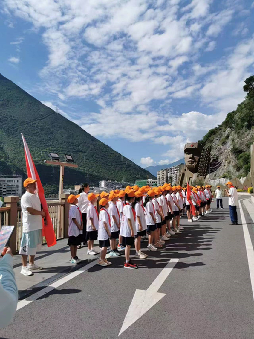 本網(wǎng)訊 今年是全面貫徹落實黨的二十大精神的開局之年,為認真貫徹落實《關(guān)于進一步做好新時代關(guān)心下一代工作的意見》精神,引導(dǎo)廣大青少年成為德智體美勞全面發(fā)展的社會主義建設(shè)者和接班人,7月17日,“老少共筑中國夢·民族團結(jié)一家親”瀘定縣青少年夏令營活動在瀘定縣紀念碑公園舉行。圖為活動現(xiàn)場,瀘定關(guān)工委老同志與青少年一起“重走長征路”。  瀘定縣關(guān)工委 攝影報道