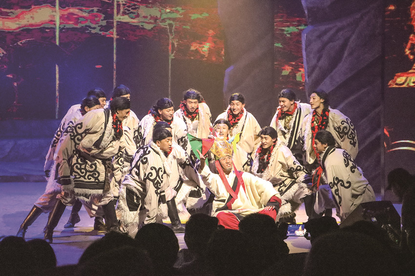 這是一場(chǎng)充滿康巴文化底蘊(yùn)的視聽盛宴,高品質(zhì)的演出陣容,極具地方特色的舞臺(tái)效果,引人入勝的劇情細(xì)節(jié)……演出在一首阿卡貝拉版《康定情歌》中拉開序幕,7名演員以多聲部合聲演繹這首蜚聲中外的世紀(jì)情歌,舞臺(tái)紗幕上顯現(xiàn)的星光點(diǎn)點(diǎn),仿佛將璀璨星空搬到了舞臺(tái)上。